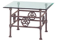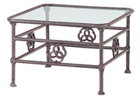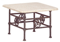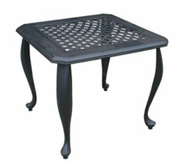 It presents our beautifully designed Cast Aluminum Corner/End Table. This table comes from the Renaissance line of furniture. Available in over 20 designer finishes and your choice of table top. The table top seen here is made with 3/8" glass, but you can also have tempered glass, mosaic stone, carved stone, fiberstone, or cast. And because all of our furniture is made with the stylish and durable cast aluminum, this table is suitable for both the indoors and out!